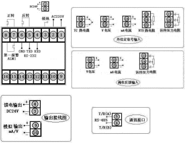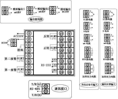 1、可分别带有一路模拟量控制输出、一路开关量控制输出--继电器正转、反转控制,及一路模拟量变送输出,可适用于各种测量控制场合。