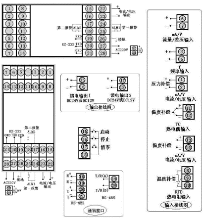 ★ 注2:仪表除0~20mA、脉冲-集电级开路两种输入信号外,其余信号均可通过设定仪表二级参数自由更改。