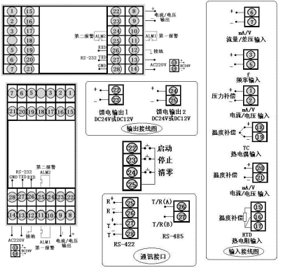 补偿输入5位流量积算控制仪,流量输入类型为4~20mA,压力补偿输入类型为4~20mA,温度补偿输入类型为4~20mA,4~20mA变送输出,无报警输出。
