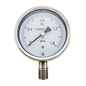 浏览: 产品特点: YBF系列不锈钢压力表 YBF不锈钢压力表 YBFN不锈钢耐振压力表 该系列压力表的零件采用耐腐蚀的不锈钢及耐腐蚀的合金材料制成,使仪表具有良好的耐腐蚀性能,可广泛应用于石油、化工、冶金、矿山、机械、电力及食品行业。直接测量不结晶体,但有腐蚀性的气体、液体的压力。 ◆主要技术指标 w 公称直径:Φ60 Φ100 Φ150 w 结构形式:径向直接安装式 w 接头螺纹:M20x1.5 w 准确度等:1.5 2.5 w 测量范围:与一般压力表的测量范围相同 w 环境条件:温度-40-70℃ 相对湿度≤85﹪ w 耐振等:YBF为V.H.3 YBFN为V.H.4 w 材料:0Cr18Ni9Ti、1Cr18Ni9Ti、316等 ◆型号规格 名称 型号 公称直径 测量范围(MPa) 接头螺纹 精度等 耐振等 不锈钢压力表 YBF 60 100 150 -0.1~0;-0.1~0.15;-0.1~2.4; 0~0.1;0~60; M20×1.5 1.5;2.5 V.H.3 不锈钢耐振压力表 YBFN 60 100 150 -0.1~0;-0.1~0.15;-0.1~2.4; 0~0.1;0~60; M20×1.5 1.5;2.5 V.H.4
