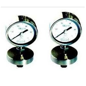 原理:膜片式压力表是膜片作为仪表的强性元件,当被测介质的压力作用到膜片上,膜片产生一个位移,再经过机芯部件,指针部件的工作,使要测的 压力清楚地在刻度盘上指示出来。