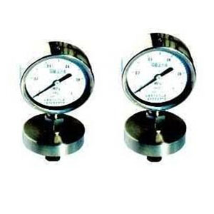 原理:膜片式压力表是膜片作为仪表的强性元件,当被测介质的压力作用到膜片上,膜片产生一个位移,再经过机芯部件,指针部件的工作,使要测的 压力清楚地在刻度盘上指示出来。