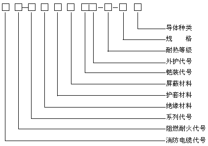 | 消防电缆代号 | G | 高阻燃隔氧层消防电缆 |